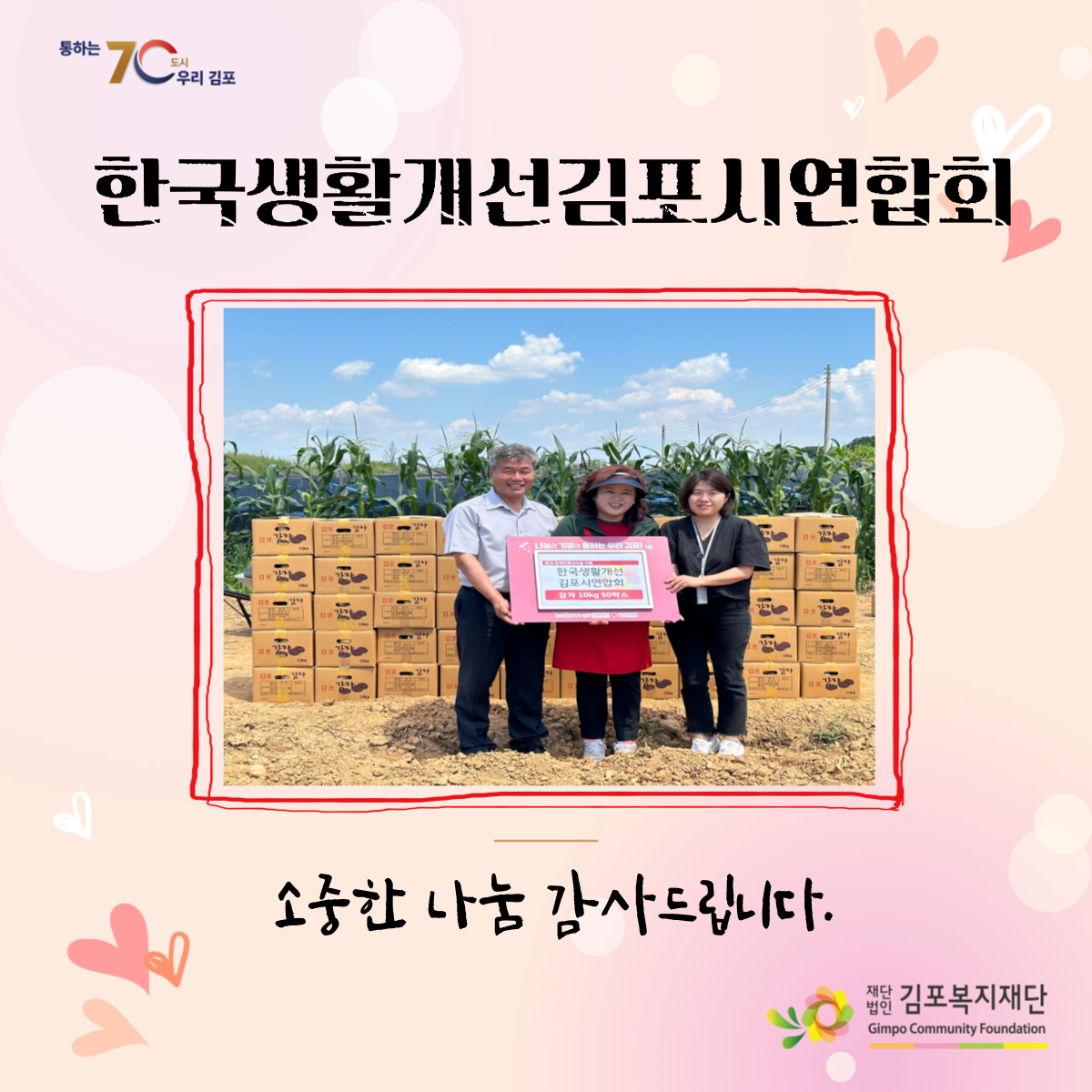 한국생활개선김포시연합회에서 감자 10kg 50박스를 기부하였습니다.