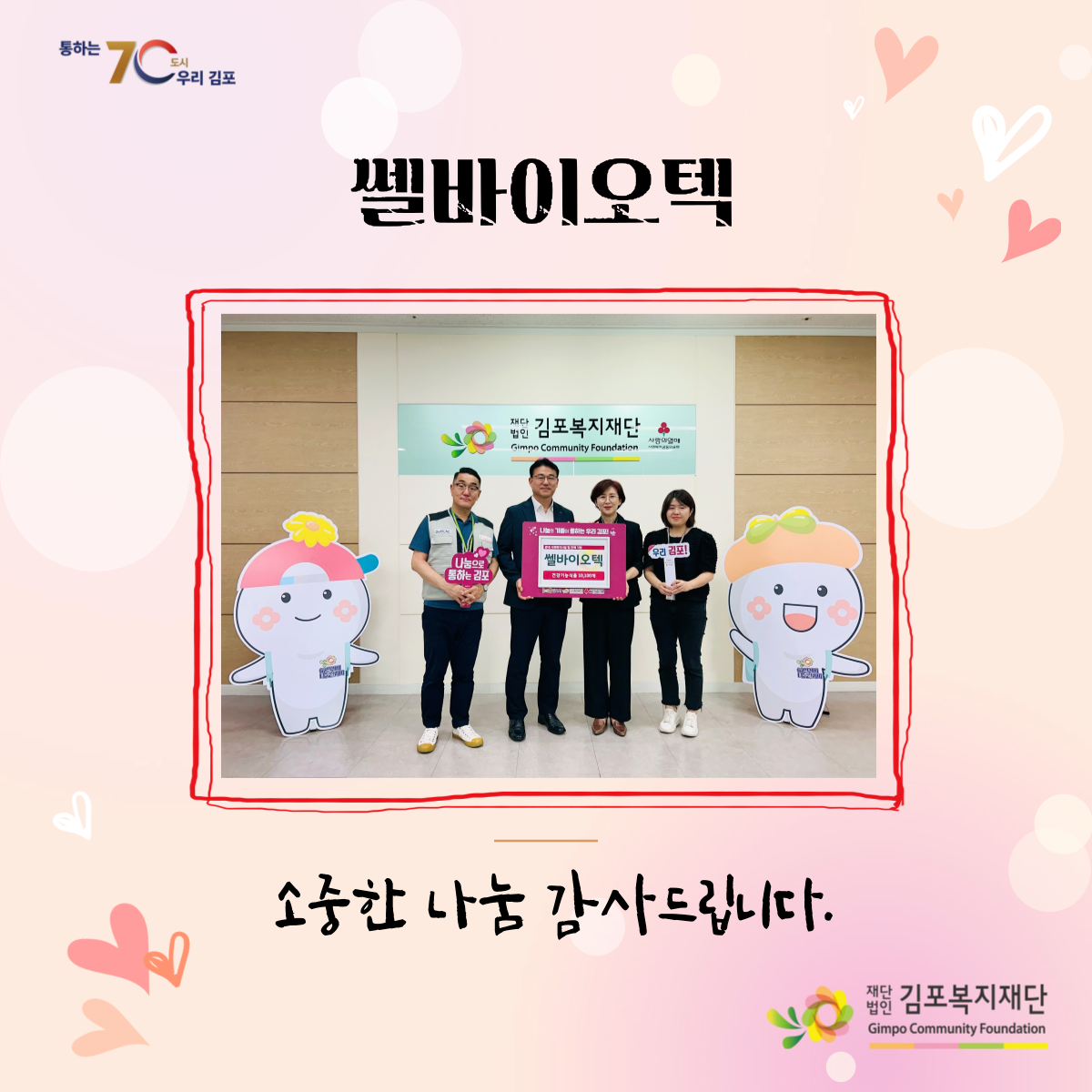 쎌바이오텍에서 건강기능식품 10,100개를 기부하였습니다.