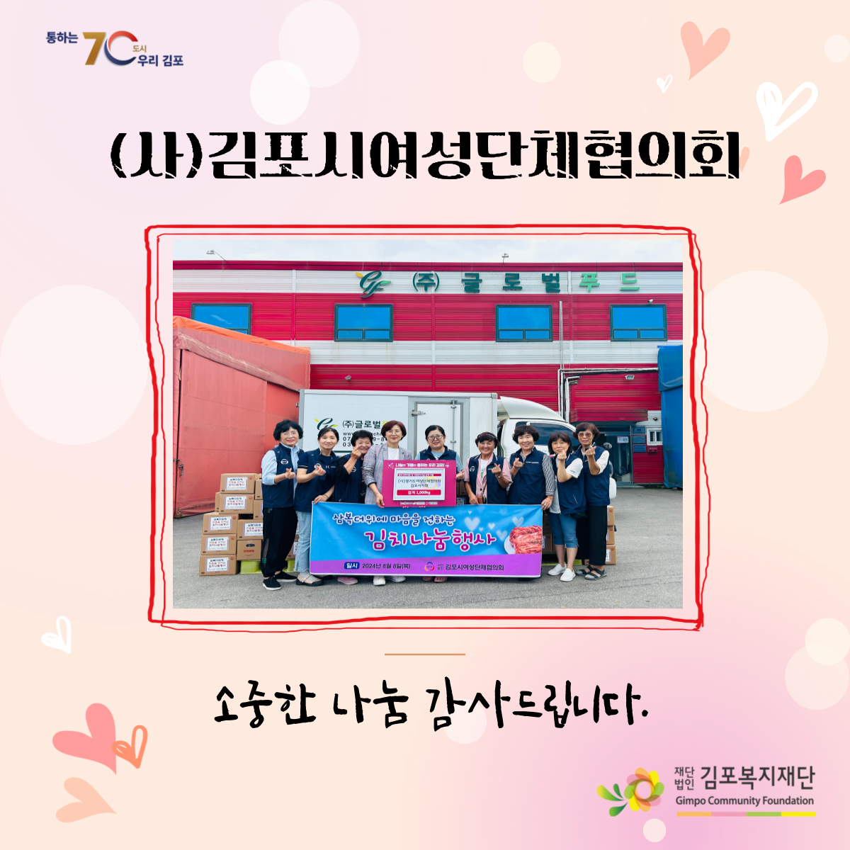 (사)김포시여성단체협의회에서 김치 1,000kg을 기부하였습니다.