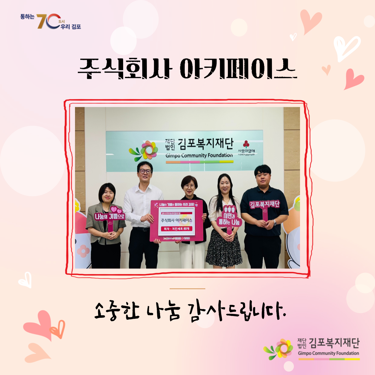 주식회사 아키페이스에서 치킨·피자 80세트를 기부하였습니다.