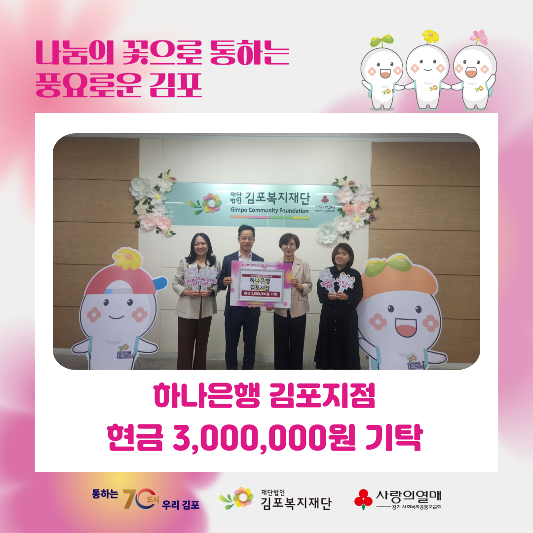 꾸준한 나눔을 통해 선한 영향력을 실천하고 있는 하나은행 김포지점에 감사드립니다.