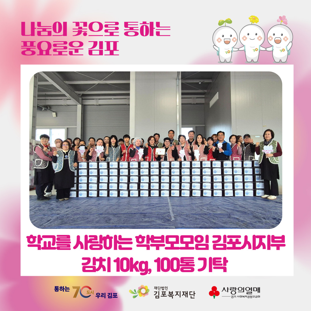 올해에도 변함없는 마음으로 김장김치 10kg, 총100통을 김포복지재단에 기탁해 주셨습니다.
