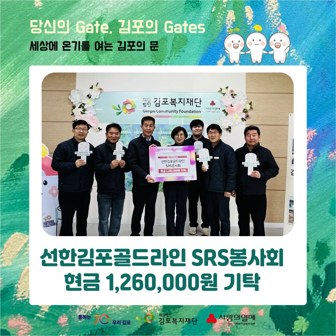 2025년 12월 12일(금), 김포골드라인 내에서 활발히 활동하고 있는 선한골드라인SRS봉사회에서 지역사회 취약계층 지원을 위해 현금 1,260,000원을 기탁해주셨습니다.