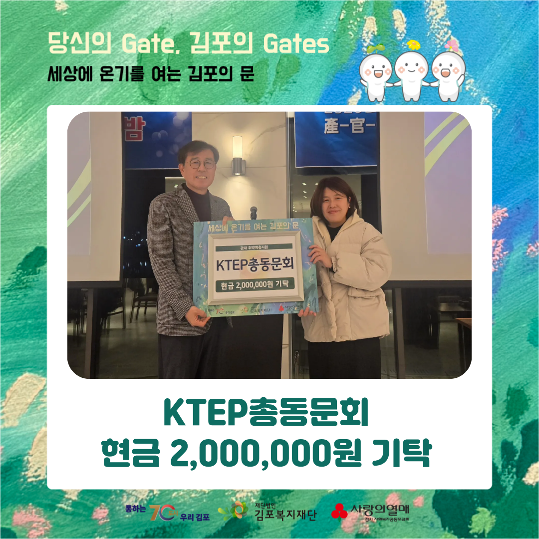 2025년 12월 19일, KTEP총동문회에서 김포복지재단에 현금 2,000,000원을 기탁해 주셨습니다.