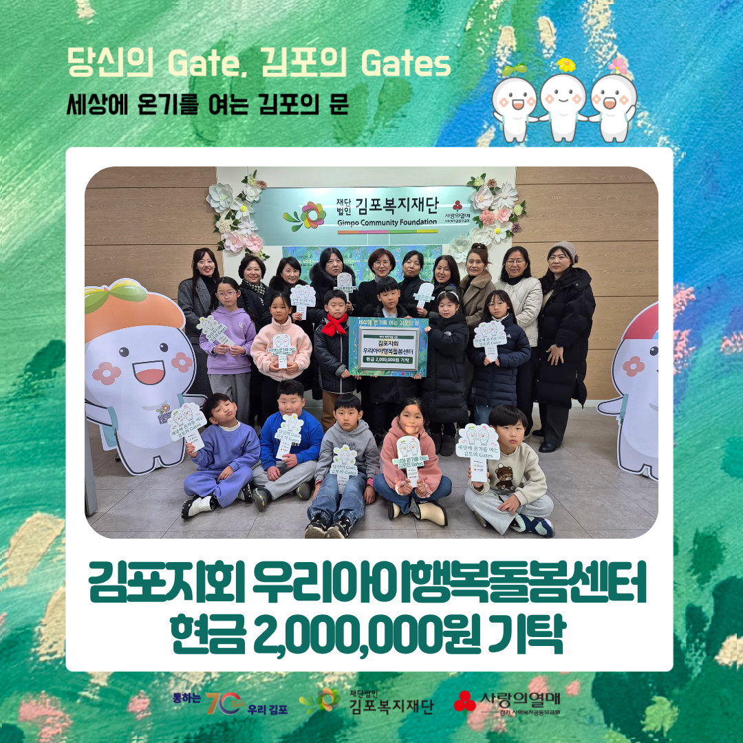 2025년 12월 26일 김포지회 우리아이행복돌봄센터에서 나눔저금통 활동을 통해 모은 성금 2,000,000원을 지역사회를 위해 기탁하며 따뜻한 연대의 뜻을 전했습니다. 아이들이 일상 속에서 차곡차곡 모은 마음이 하나로 모여, 지역사회에 온기를 전하는 의미 있는 나눔으로 이어졌습니다.