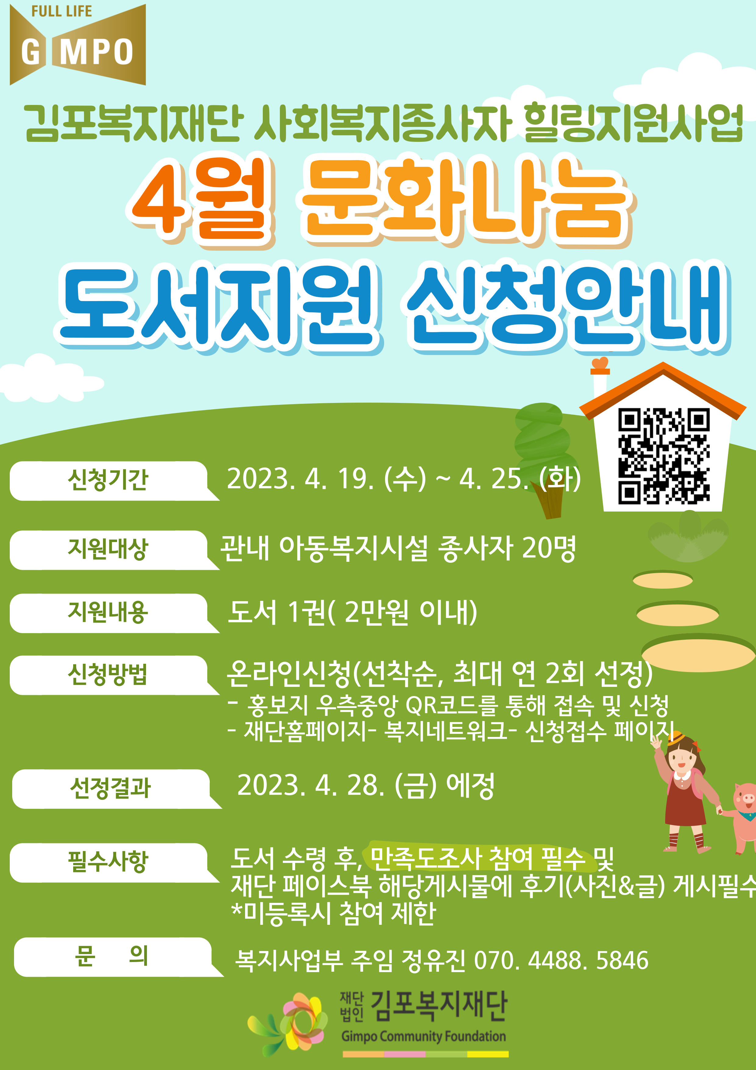 [문화나눔] 2023년 4월 사회복지기관 종사자 '도서지원' 신청안내