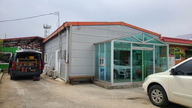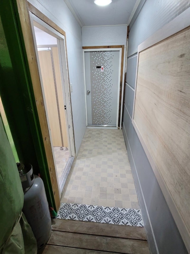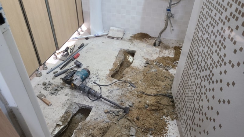 여자 화장실은 온수가 제대로 나오지 않아서 보일러 시공 작업을 하고 있습니다.
