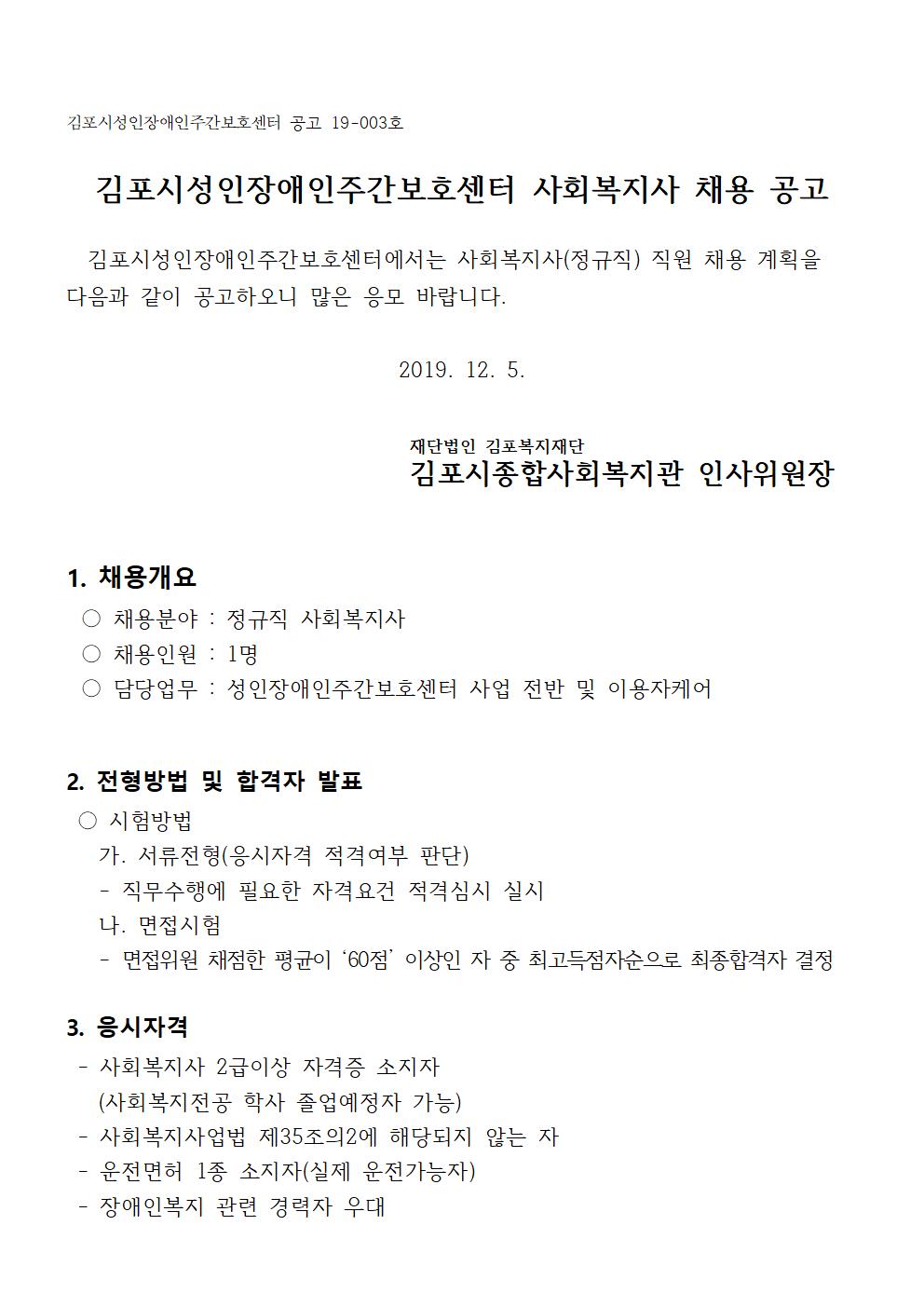 김포시성인장애인주간보호센터 사회복지사 채용 공고.hwp (19KB)